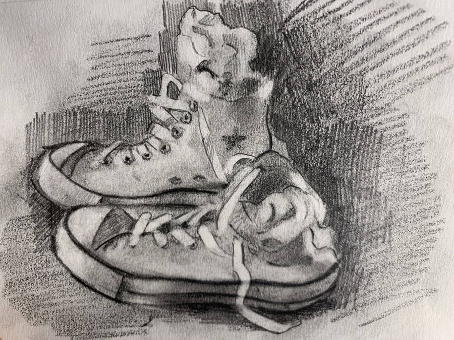 My new paintings and monotypes began with sketches I made in Paris in late December 2025. These drawings were created directly from figurative masterworks at the Musée d’Orsay and the Musée Picasso, where my wife, Rachel, and I were visiting. Using simple lines to abstract the forms, the initial sketches serve as templates for paintings on canvas and monotypes produced on my large etching press.