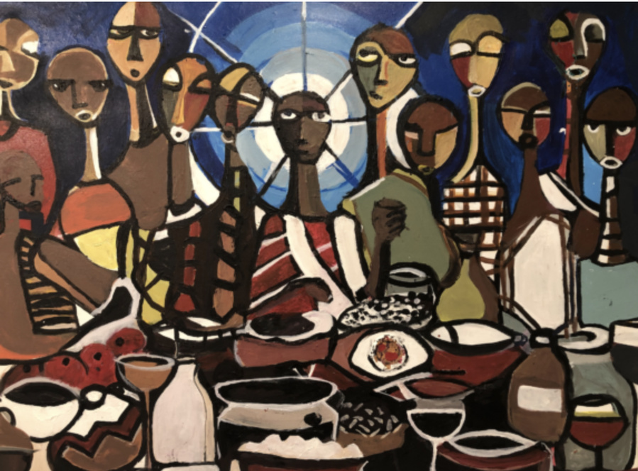 My current paintings reflect my life-long exploration of the influence of my father, but more than that they tell the story of a profound and traumatic reinvention of my own artistic practice. After being born in Ithaca (while my father was a PhD student at Cornell) I moved with my family to Ghana when I was 5 years old, where I grew up in a creative home surrounded by my father’s art and exploring my own creativity as a painter and DJ. I returned to Ithaca for high school at the age of 18, and then traveled back to Ghana as an adult.  In 2010, a traumatic brain tumor left me without the use of my dominant (left) hand, and needing to use a wheelchair for mobility.